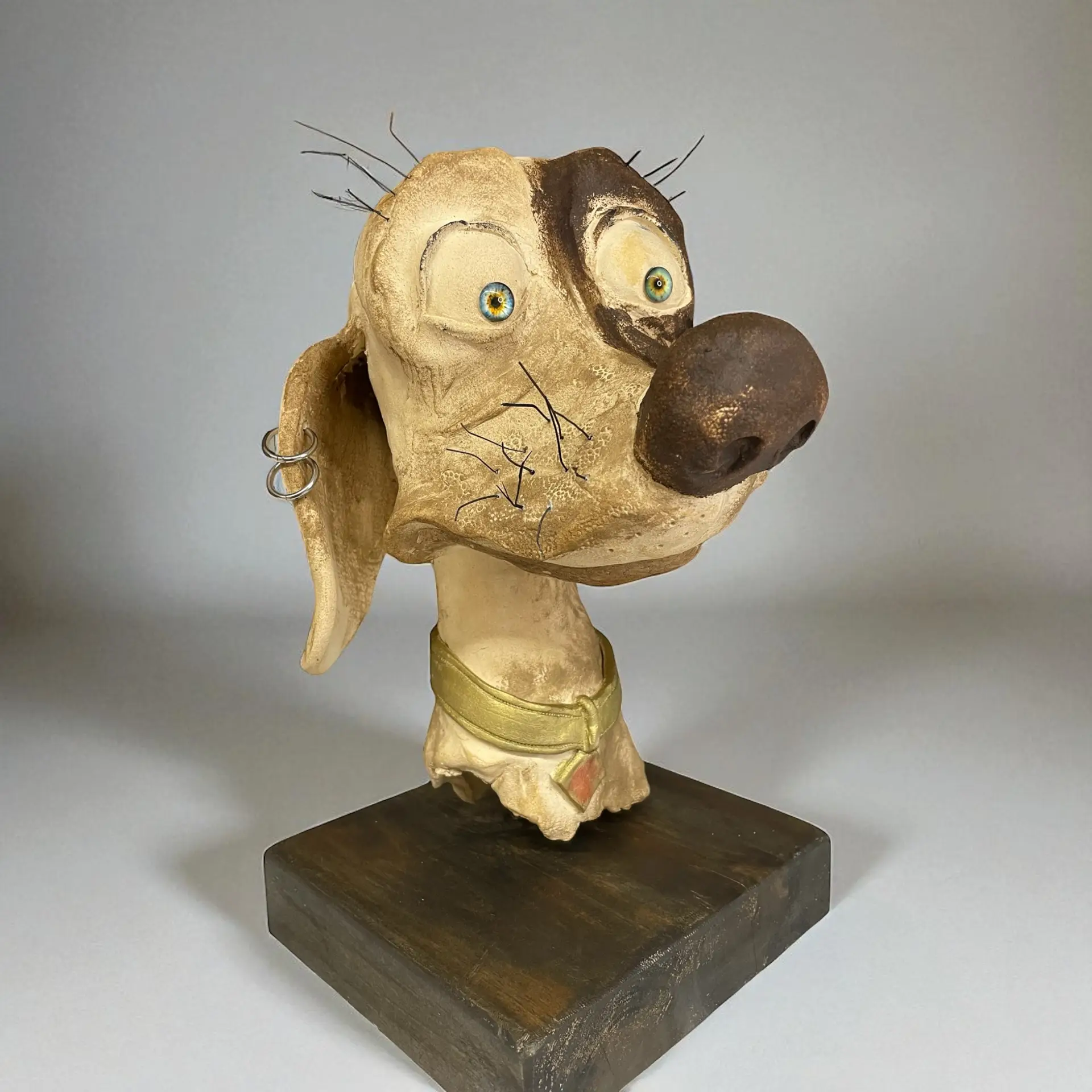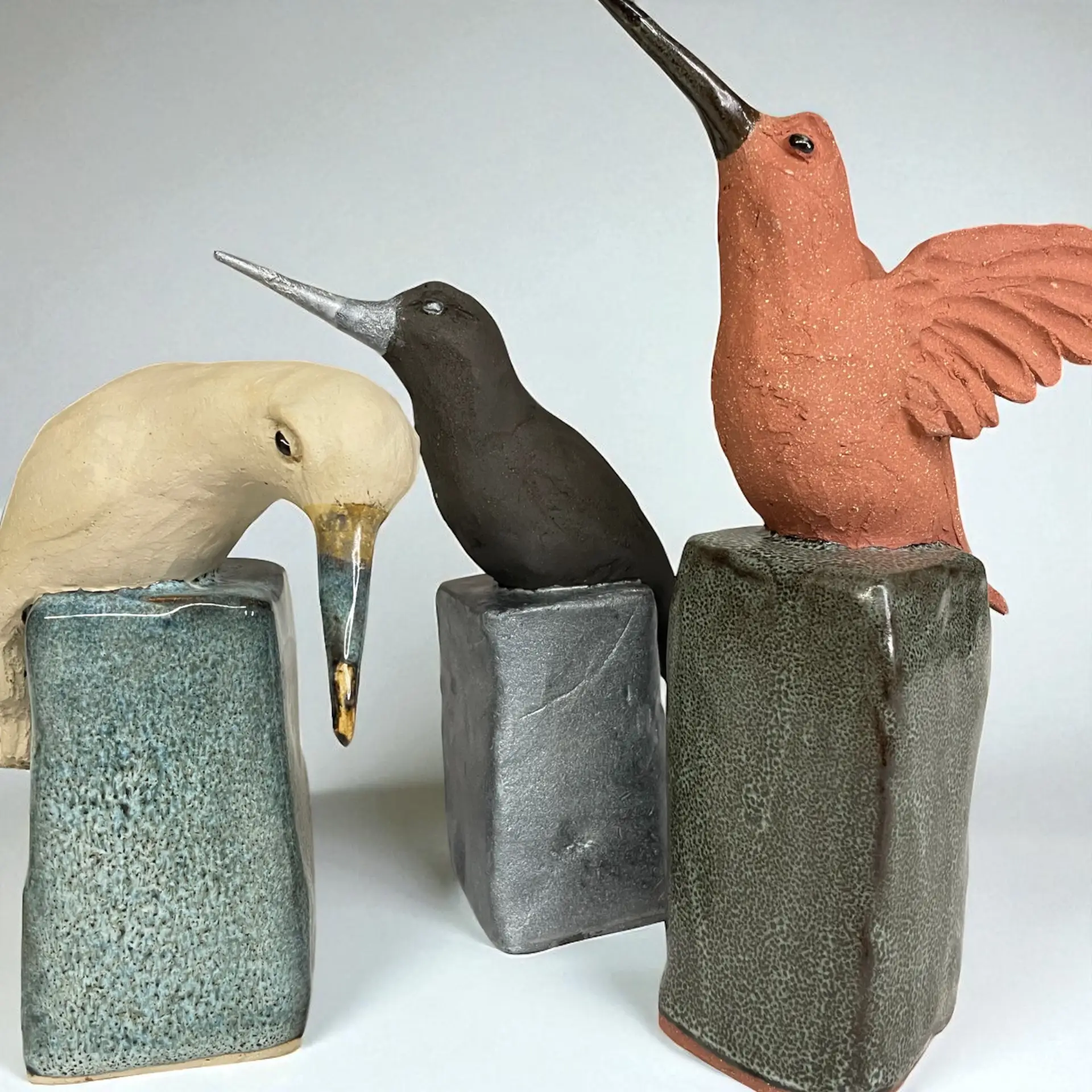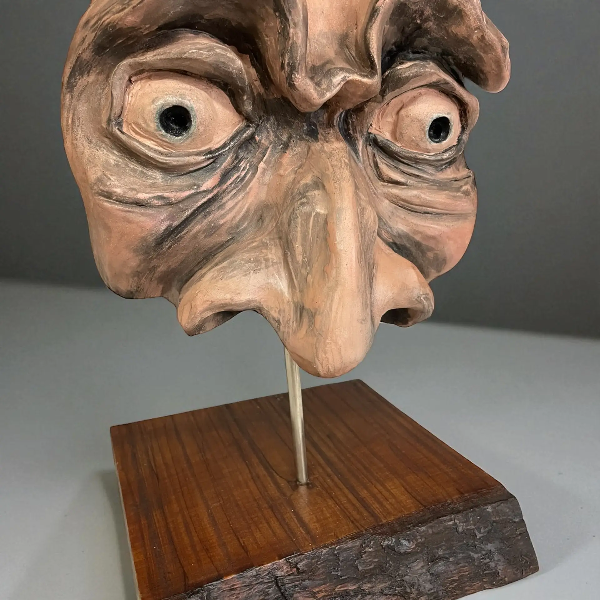 Modelage grès blanc en finition cire coloré. Support bois et métal.
