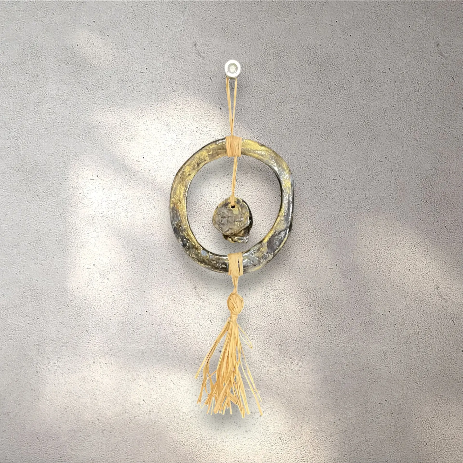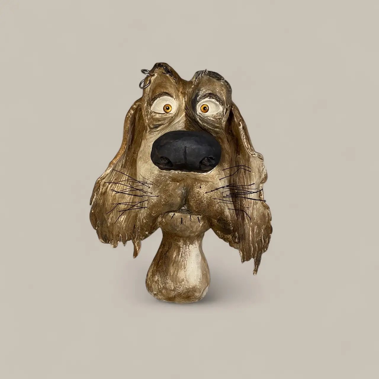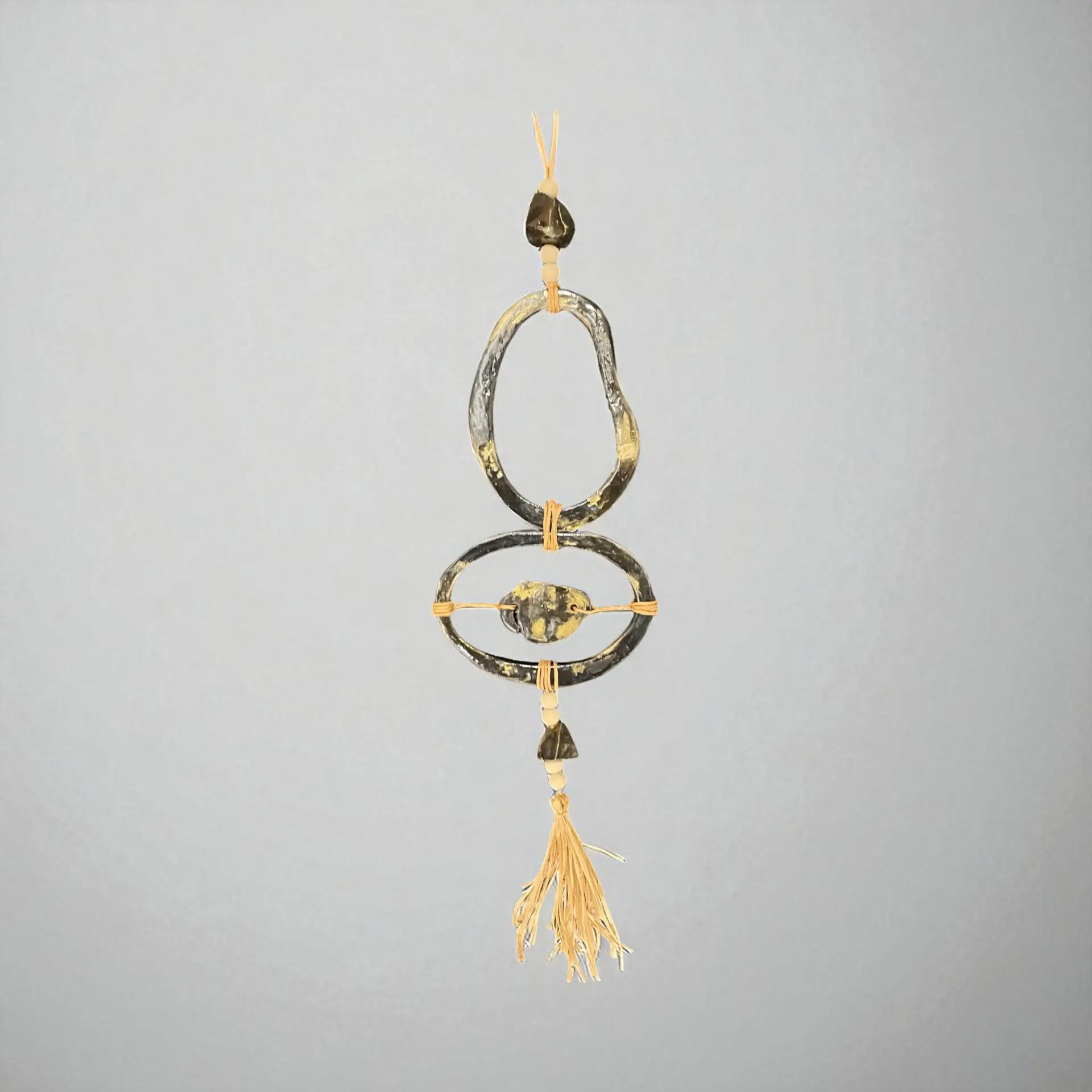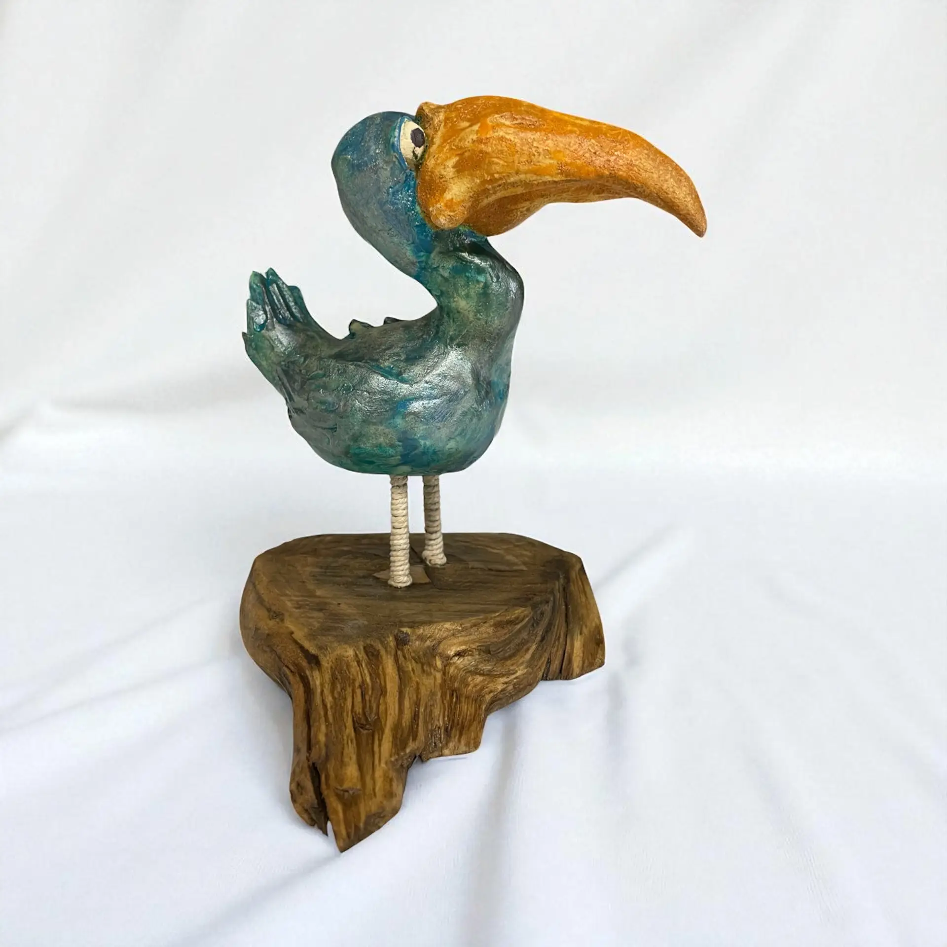 Modelage grès blanc en finition cire coloré. Support bois et métal.