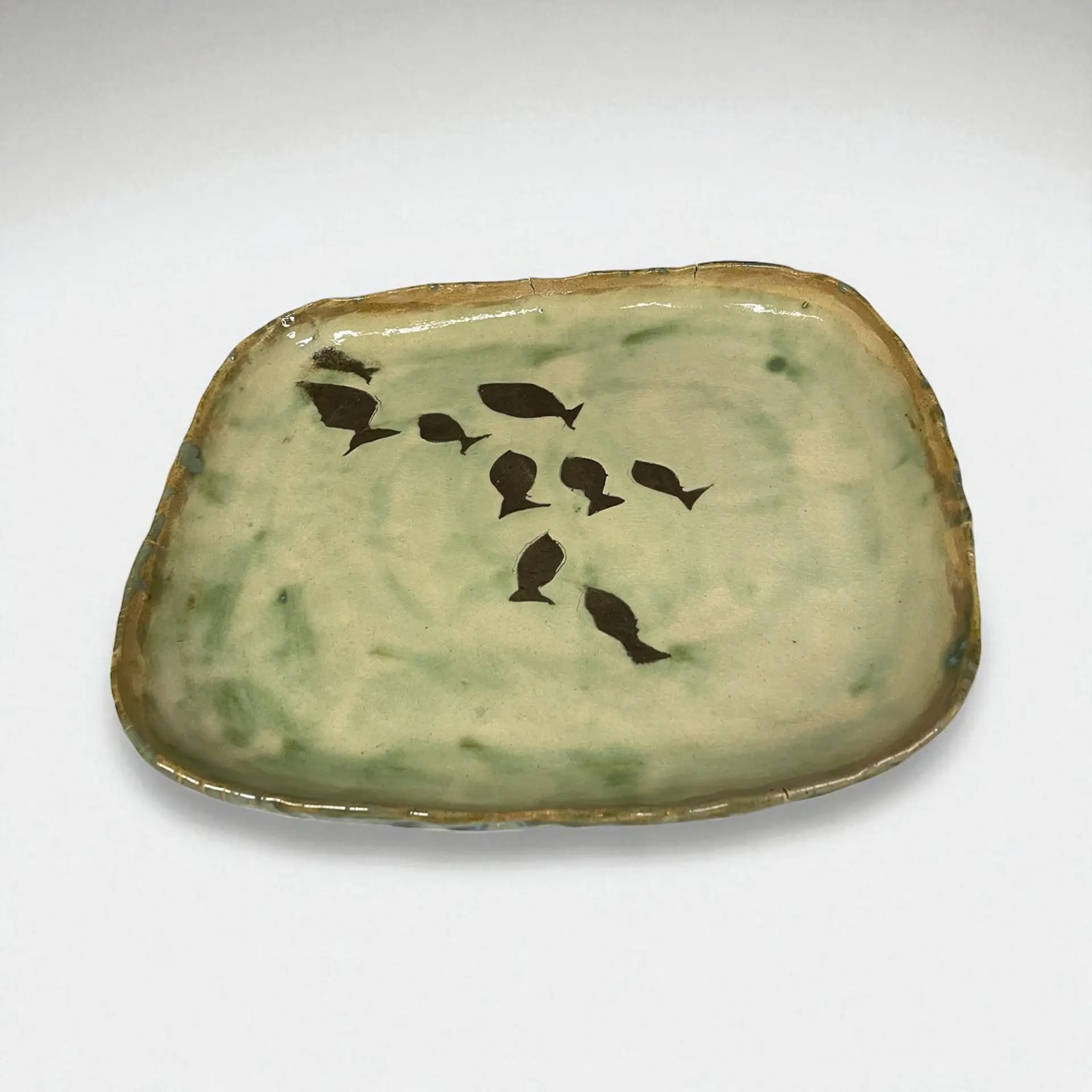 Modelage grès blanc en finitions jus d'oxyde et émail.