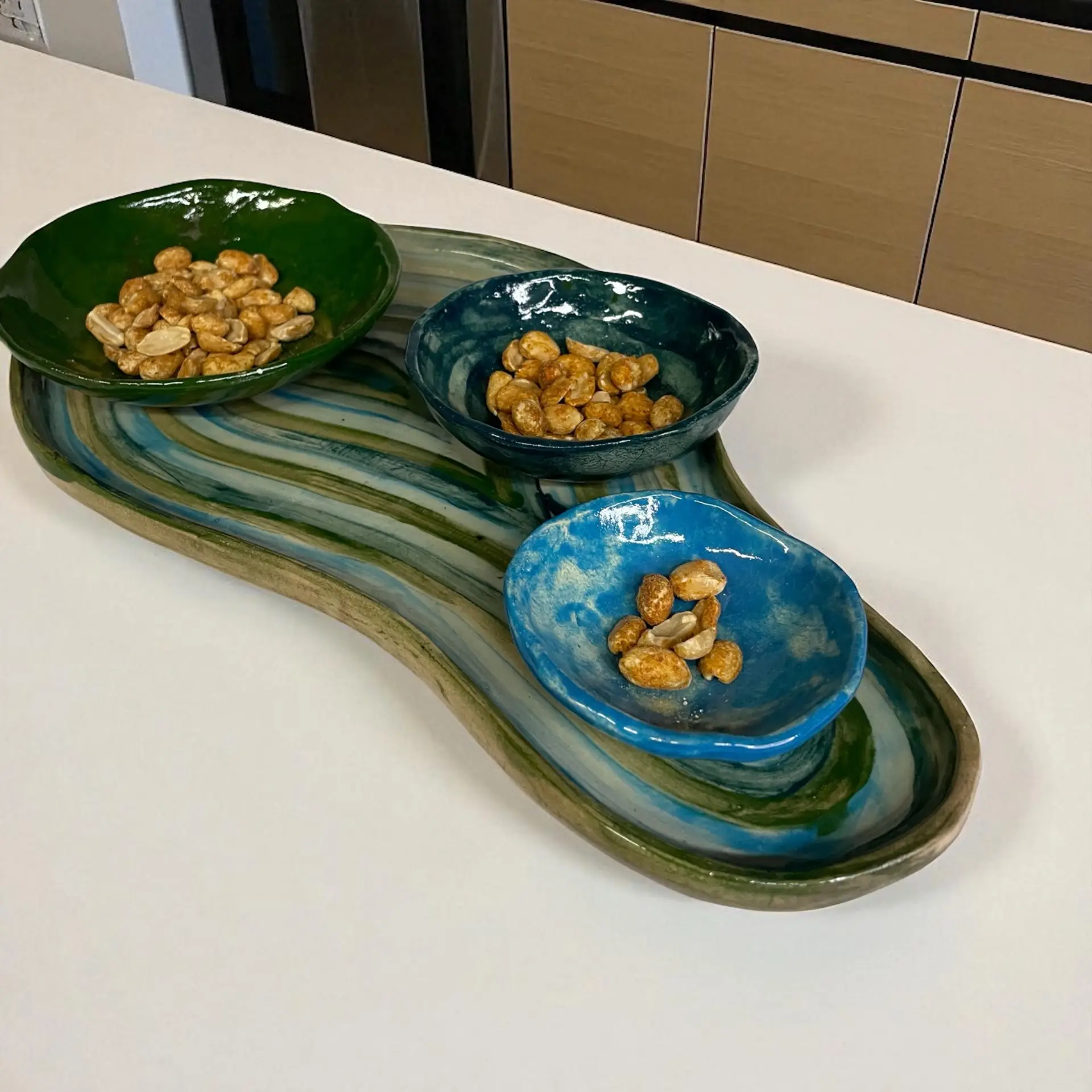 Modelage grès de treigny en finitions émail et réserve à la cire.