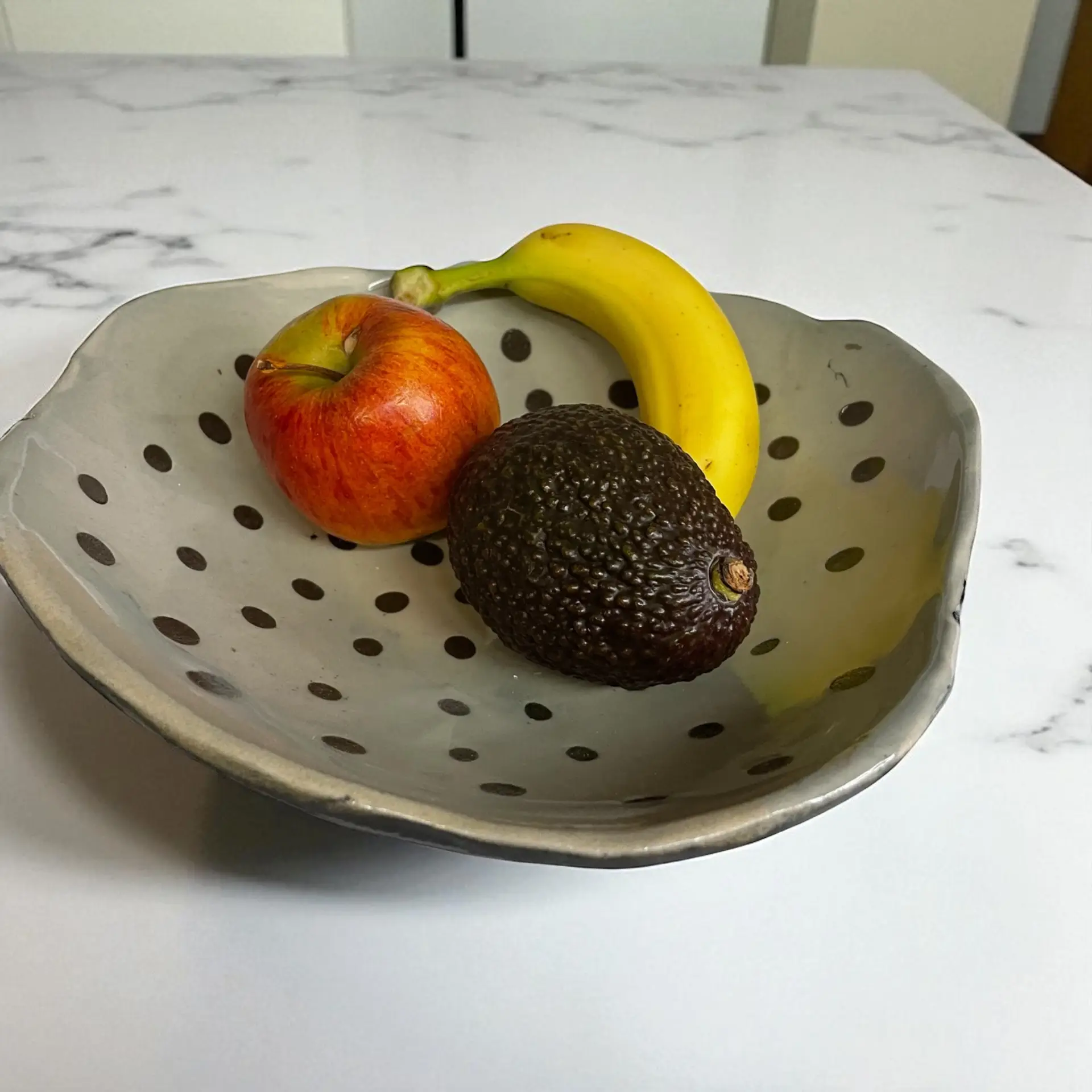 Modelage grès blanc en finition jus d'oxyde et émail.